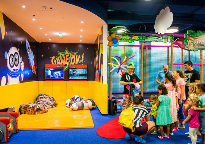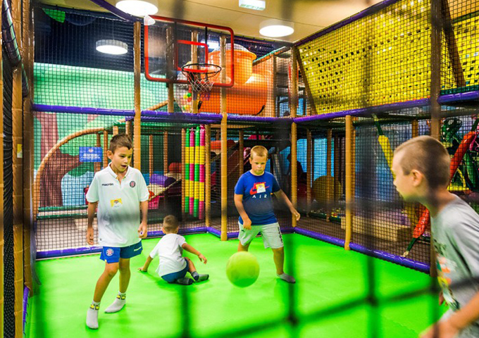 U skladu s posljednjim svjetskim trendovima u industriji zabave, u igraonici Vas čekaju labirint sa nizom prepreka, odvojeni prostor za nogomet i košarku, trampolini, zid za penjanje, bazeni sa više od 5000 šarenih loptica, poligon s vrtuljcima, uzbudljivi tobogan i prolazi za istraživanje. Djeca će tako trčati, poskakivati, održavati ravnotežu, penjati se i provlačiti, preskakati i doskočiti te kroz igru razvijati krupnu motoriku.