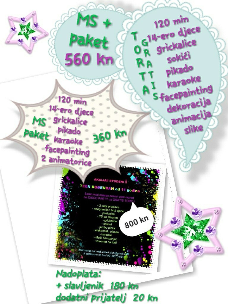 Uz mnoštvo smijeha, natjecateljskih i plesnih igara prilagođenih uzrastu, facepainting, pikado i karaoke u super prostoru na 80-ak kvadrata i naravno sa, uvijek veselim i razigranim tetama, to je najbolji rođendan