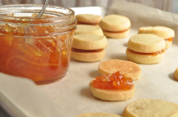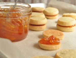 Marmeladom spajajte kekse po dva, a ako volite možete ih posipati šećerom u prahu.