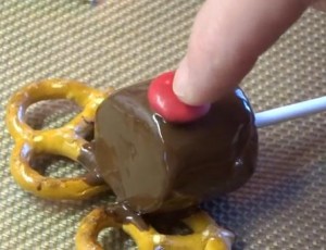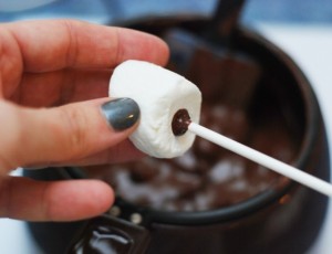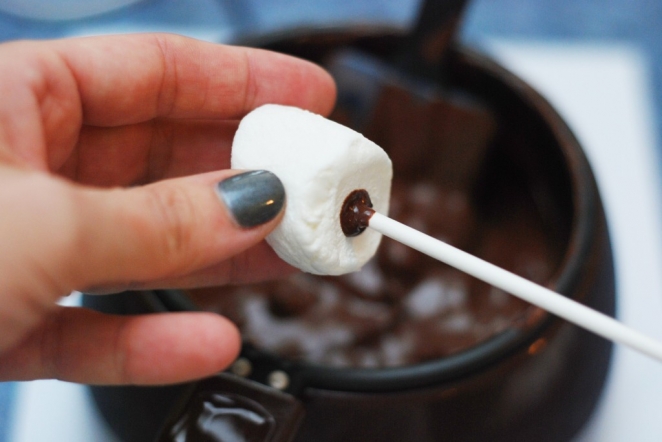 • U pjenasti bombon zabodite štapić te ga umočite u otopljenu čokoladu.