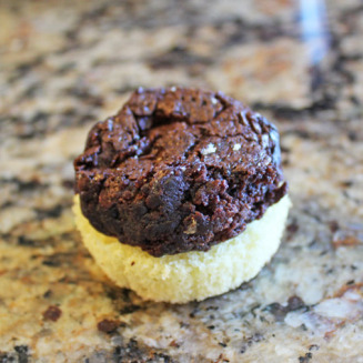 Bijele muffine presjecite na pola i isto to učinite sa crnima. Na jedan dio bijelog muffina stavite dio crnog. Špricom za kolače ukrasite crni muffin sa bojama i poklopite sa komadom bijelom muffina.
