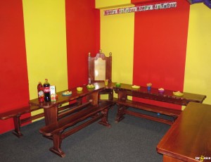 Zatvorena dvorana Dvorana 1 je veličine 100m2, opremljena bazenom s lopticama sa mini toboganom, air-hockey-em, konzolom sa čekićima (moraju udarati figurice koje iskaču van), trampolinom i velikim drvenim stolom sa slavljeničkim tronom.