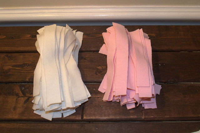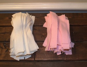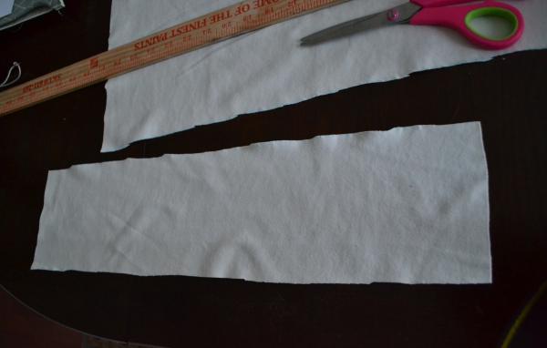 - Pamučnu majicu narežite na trakice.