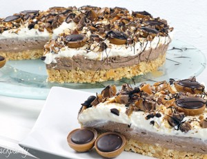 - Izvadite tortu iz frižidera i ovih 12 toffifee-a raspodijelite ravnomjerno po njoj.