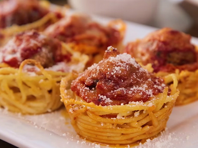 - Uzmite kalupe za muffine koje prije toga namažite maslacem i u njih složite špagete.