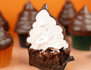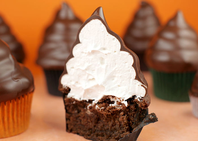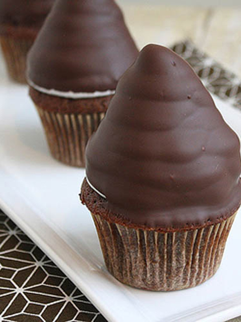 - Vrećicom za ukrašavanje stavljajte smjesu na muffine od čokolade.