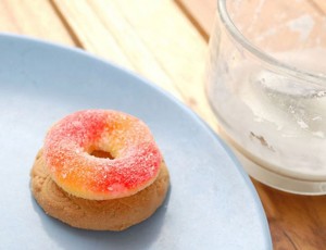 Uzmite keksić i na njega kremom zalijepite gumeni bombon kao na slici.