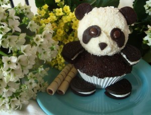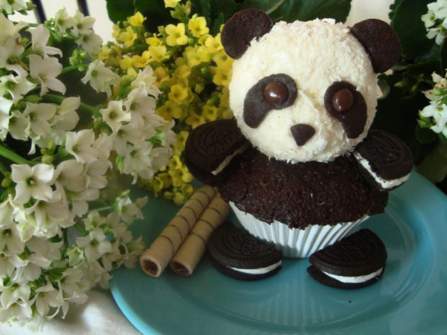 Glavu pande možete složiti od homemade raffaelo kuglica ili koristite kupovne.