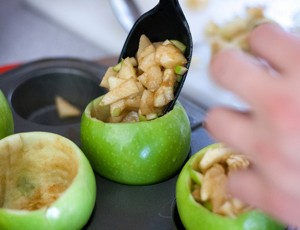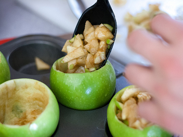 - Jabuke operite, izdubite i pripremite punjenje