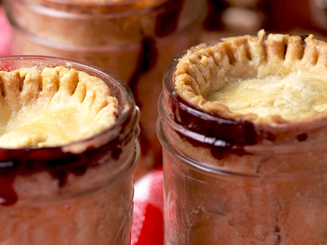 - Tijestom za pitu obložite staklenku i punite nadjevom.