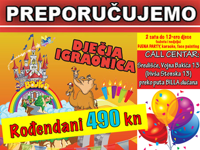 Rođendan je organiziran-vođen kroz razne natjecateljske igre i animacije prilagođene uzrastu djece, nezaboravan disco tulum i najbolji KARAOKE .