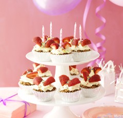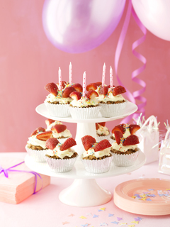 Dječaci će sigurno pojesti sve cupcakese koji su ukrašeni bananom i čokoladnim mrvicama, dok bi djevojčice mogle uživati u cupcakesima ukrašenima jagodom.