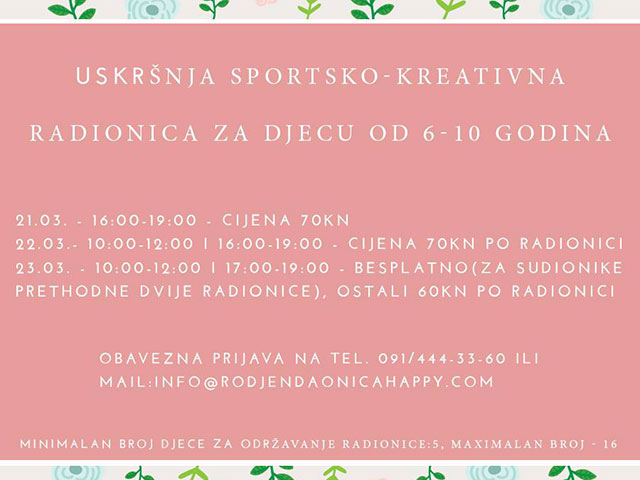 Sportsko kreativne Uskršnje radionice u rođendaonici Happy